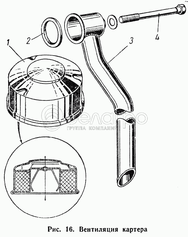 Каталог запасных частей к технике: ГАЗ-52-01. Вентиляция картера