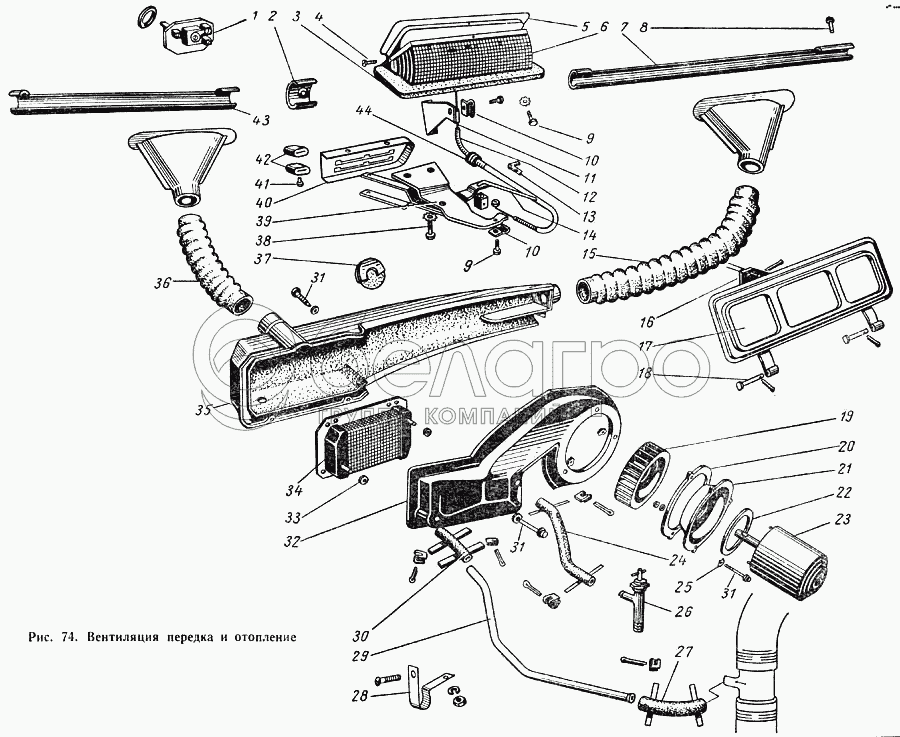 Привод вентиляции передка в сборе