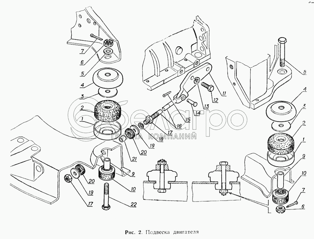 Каталог запасных частей к технике: ГАЗ-52-02. Подвеска двигателя