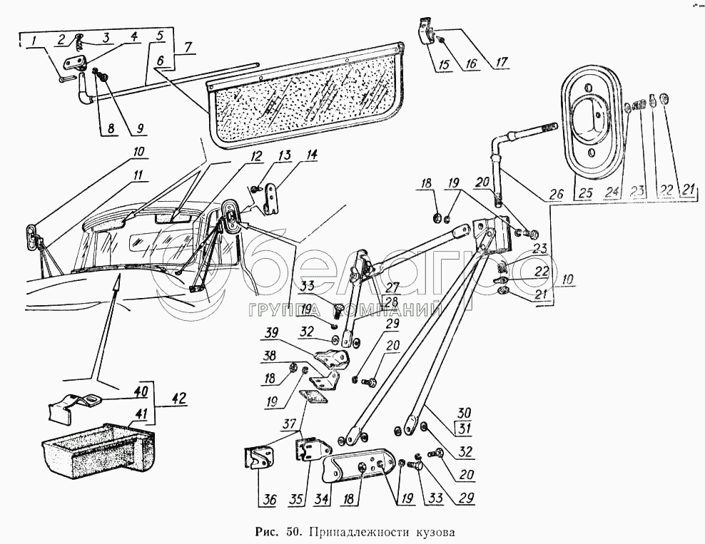 Каталог запасных частей к технике: ГАЗ-52-02. Принадлежности кузова