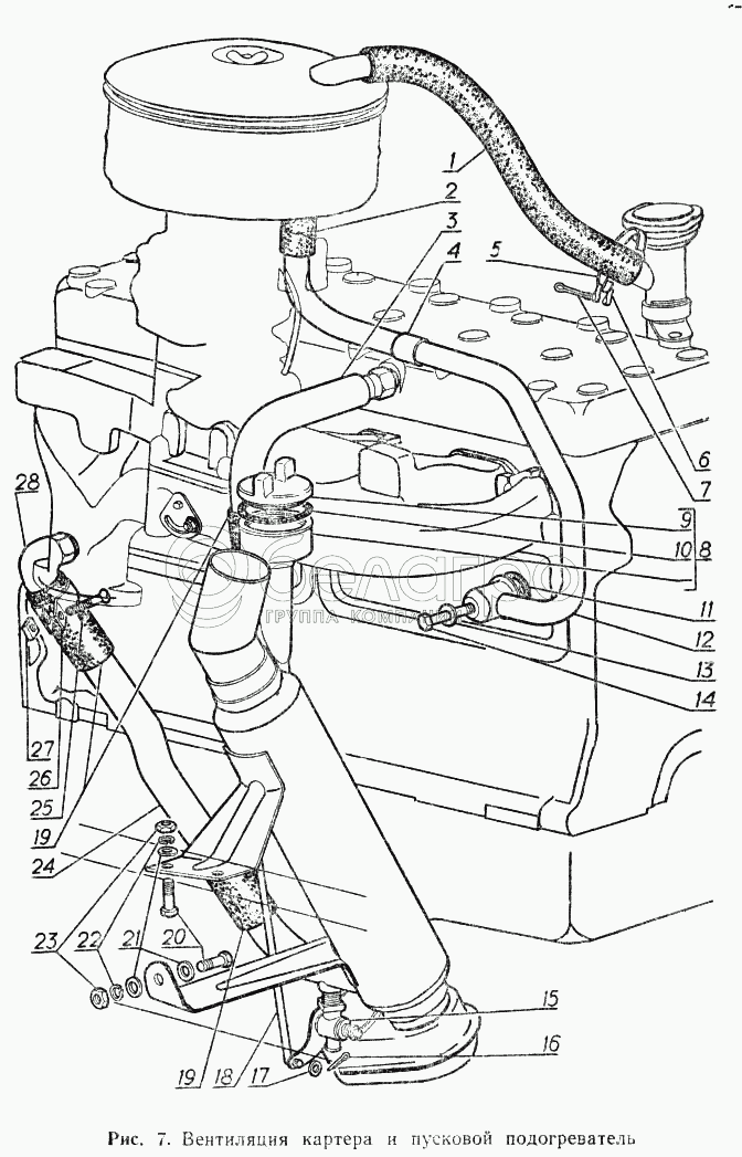 Каталог запасных частей к технике: ГАЗ-52-02. Вентиляция картера и пусковой подогреватель