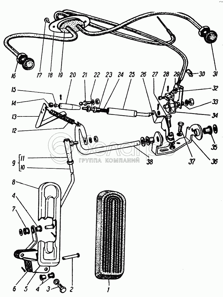 Кронштейн оболочки тяги ручного управления акселератором в сборе