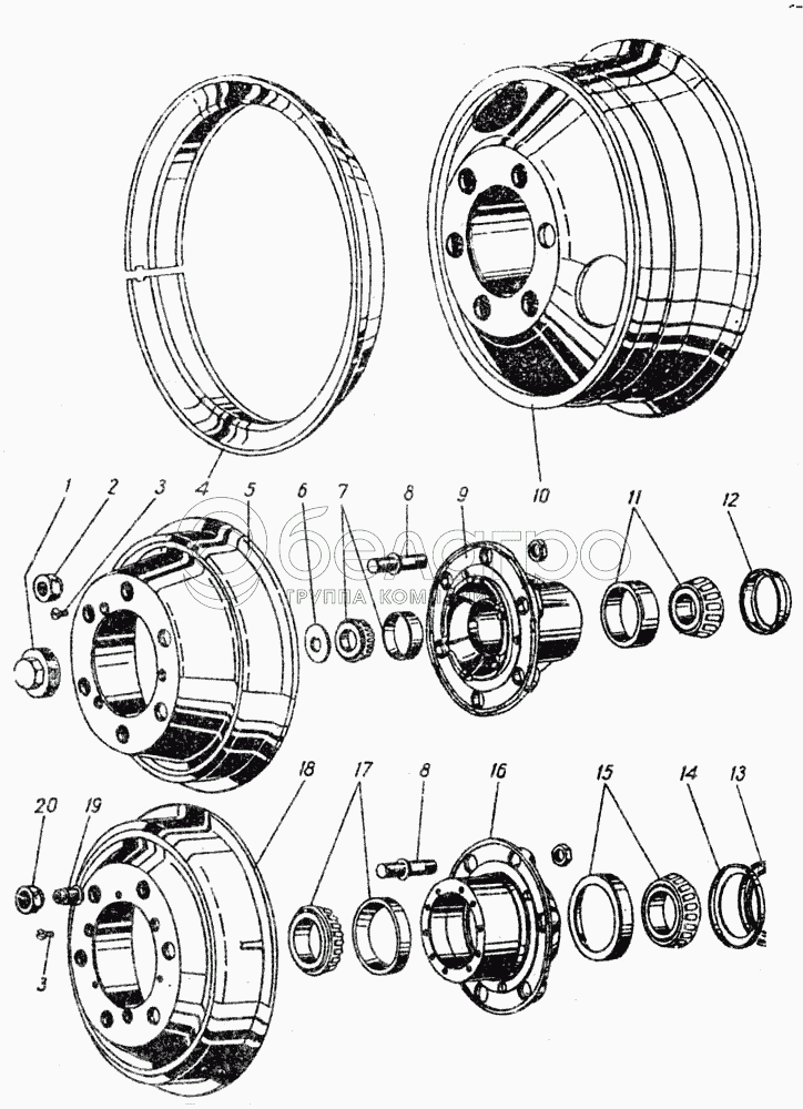 Диск и обод колеса 6,ОБ-20 в сборе
