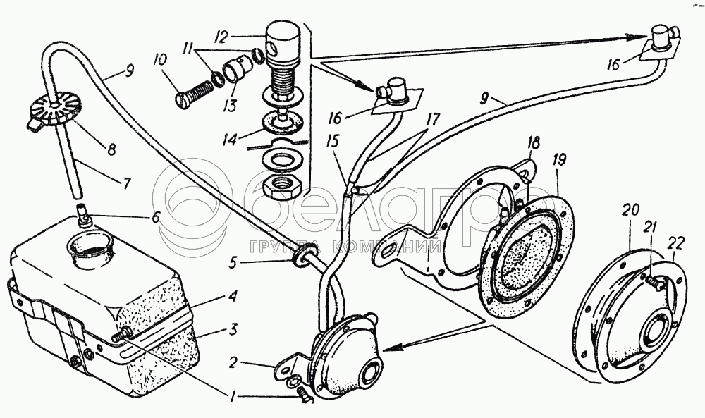 Каталог запасных частей к технике: ГАЗ-5312. Насос водяной очистки ветрового стекла (смыватель)