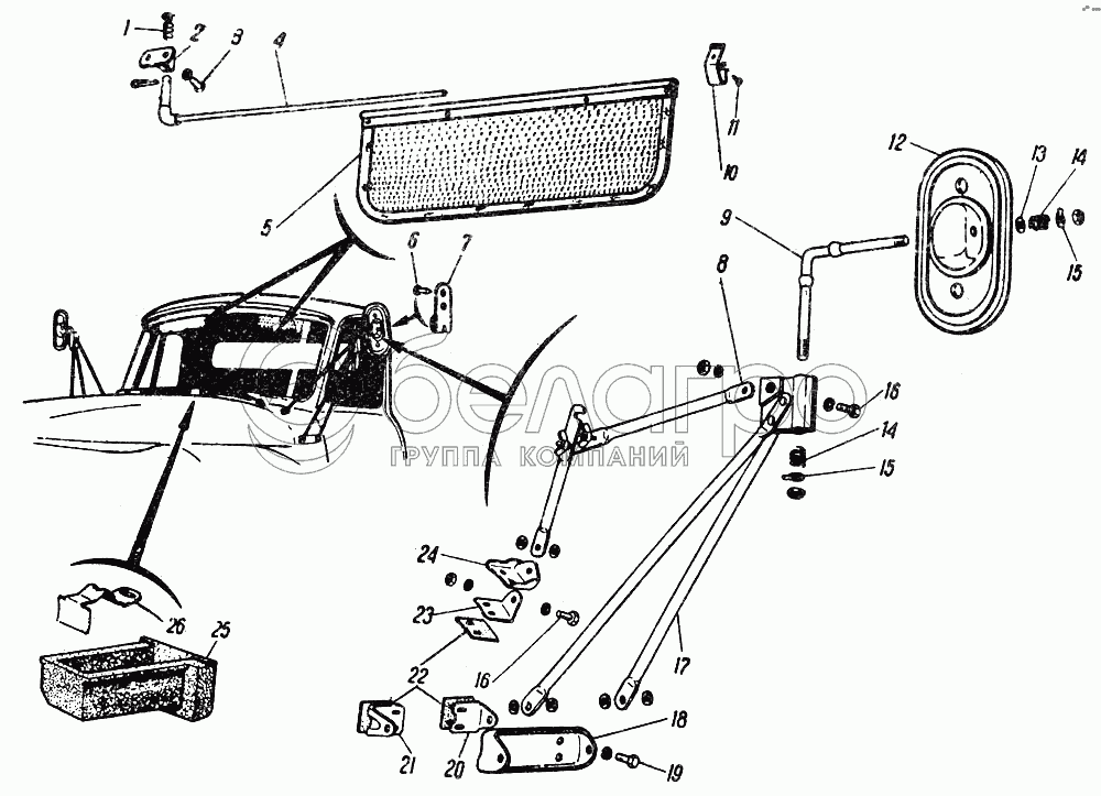 Зеркало заднего вида с осью в сборе