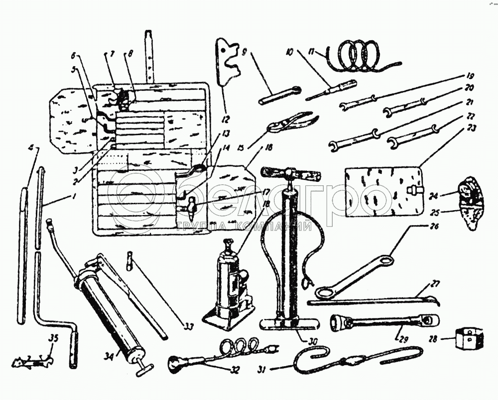 Комплект шоферского инструмента и принадлежностей, придаваемых к автомобилю