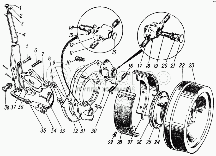 Ограничитель хода корпуса шариков разжимного механизма центрального тормоза