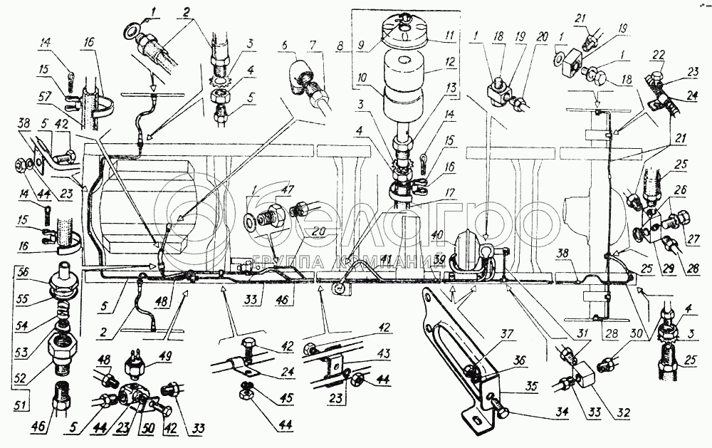Каталог запасных частей к технике: ГАЗ-5312. Трубопроводы гидротормозов