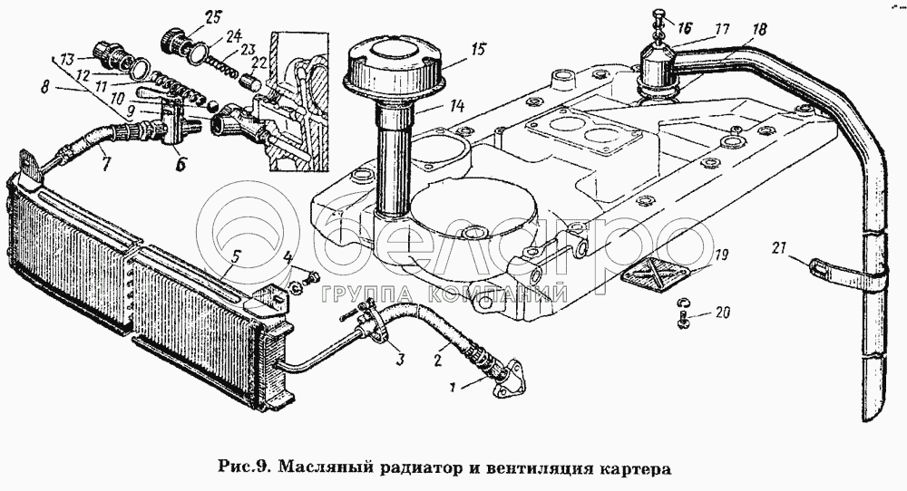 Каталог запасных частей к технике: ГАЗ-53 А. Масляный радиатор и вентиляция картера