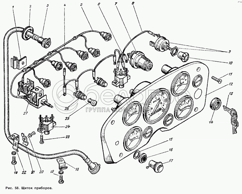 Каталог запасных частей к технике: ГАЗ-53 А. Щиток приборов