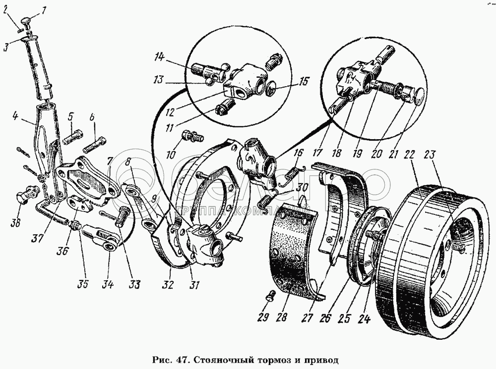 Ограничитель хода корпуса шариков разжимного механизма центрального тормоза