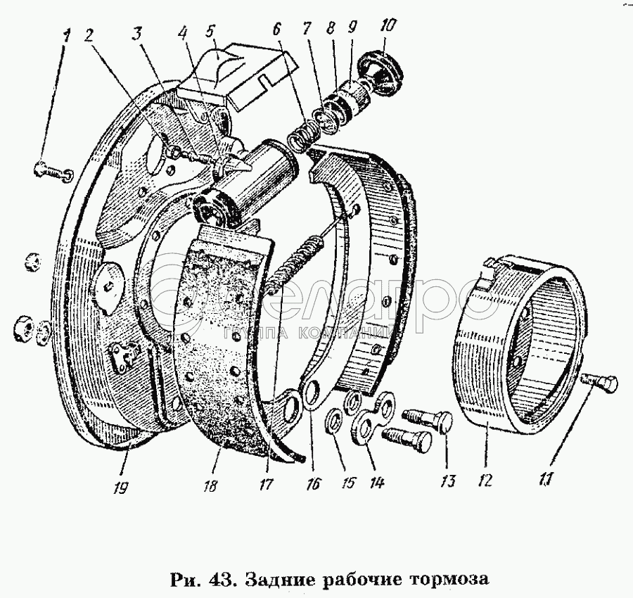 Каталог запасных частей к технике: ГАЗ-53 А. Задние рабочие тормоза