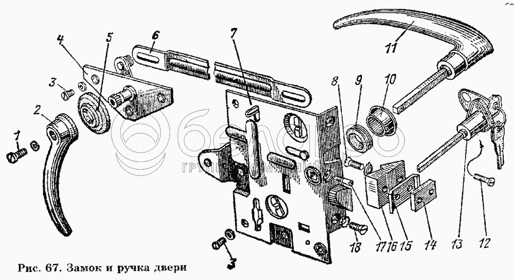 Каталог запасных частей к технике: ГАЗ-53 А. Замок и ручка двери