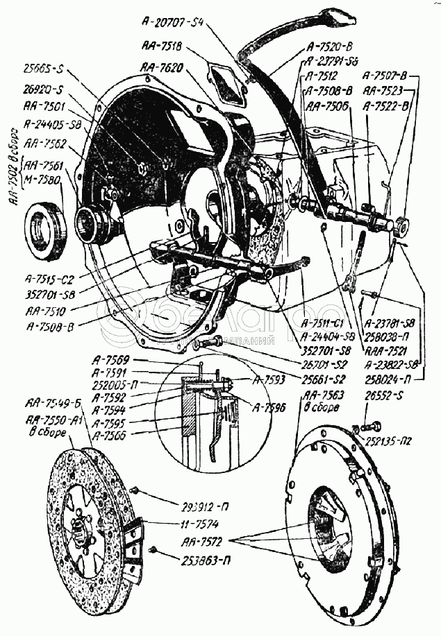 Каталог запасных частей к технике: ГАЗ-ММ "Полуторка". Сцепление