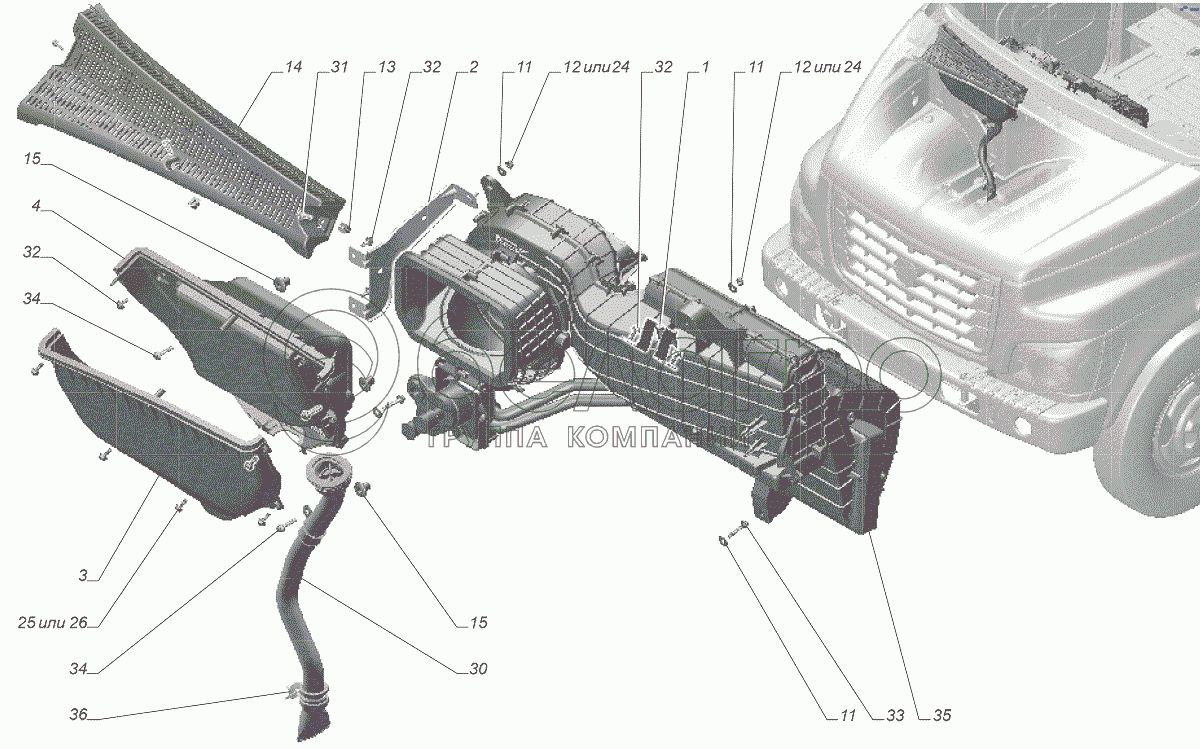 Каталог запасных частей к технике: ГАЗон NEXT C41R13-60. С41R13-8101002 Установка отопителя