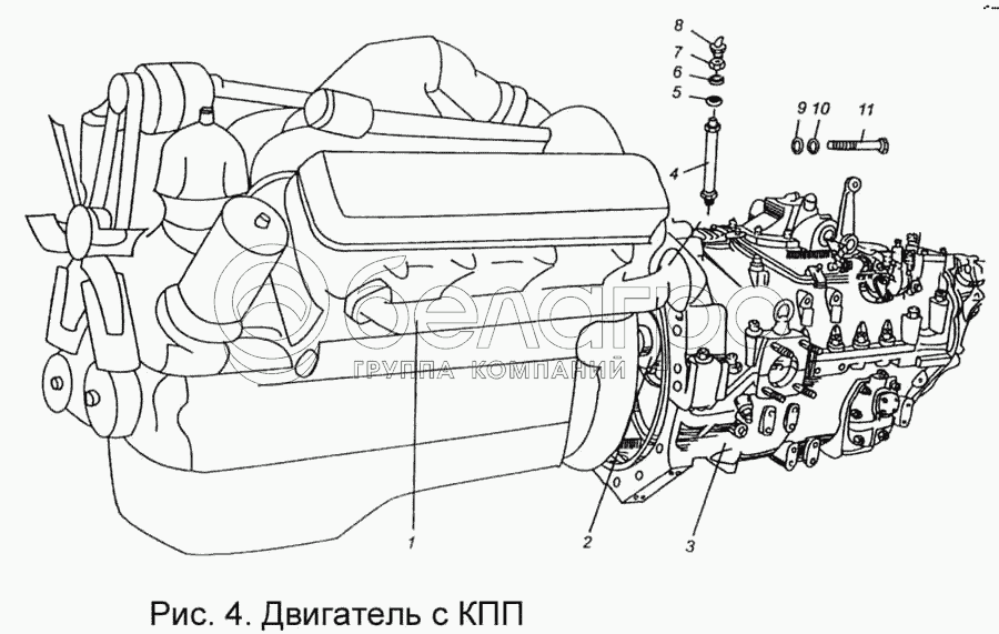 Каталог запасных частей к технике: МАЗ КПП МАЗ-543205-070. Двигатель с КПП