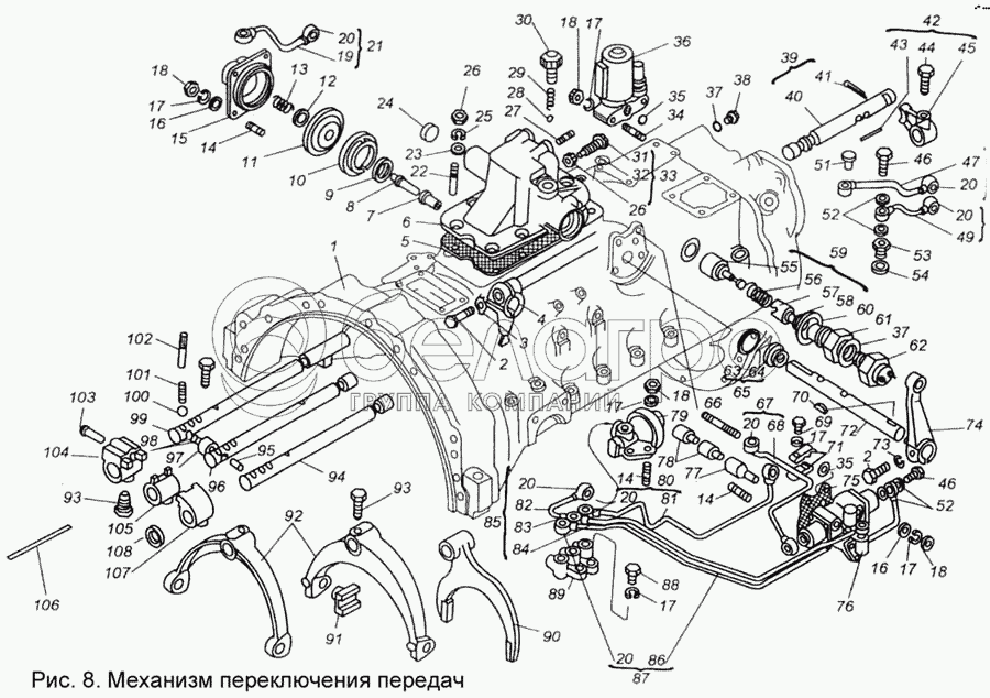 Каталог запасных частей к технике: МАЗ КПП МАЗ-543205-070. Механизм переключения передач