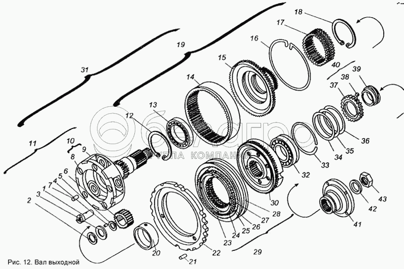 Каталог запасных частей к технике: МАЗ КПП МАЗ-543205-070. Вал выходной