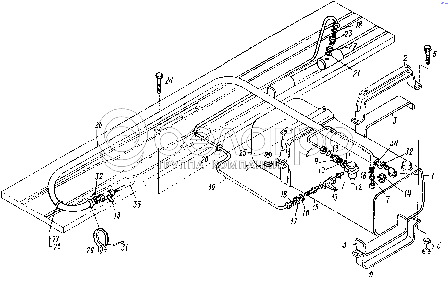 Каталог запасных частей к технике: МАЗ-3PP59. Бак топливный и его крепление