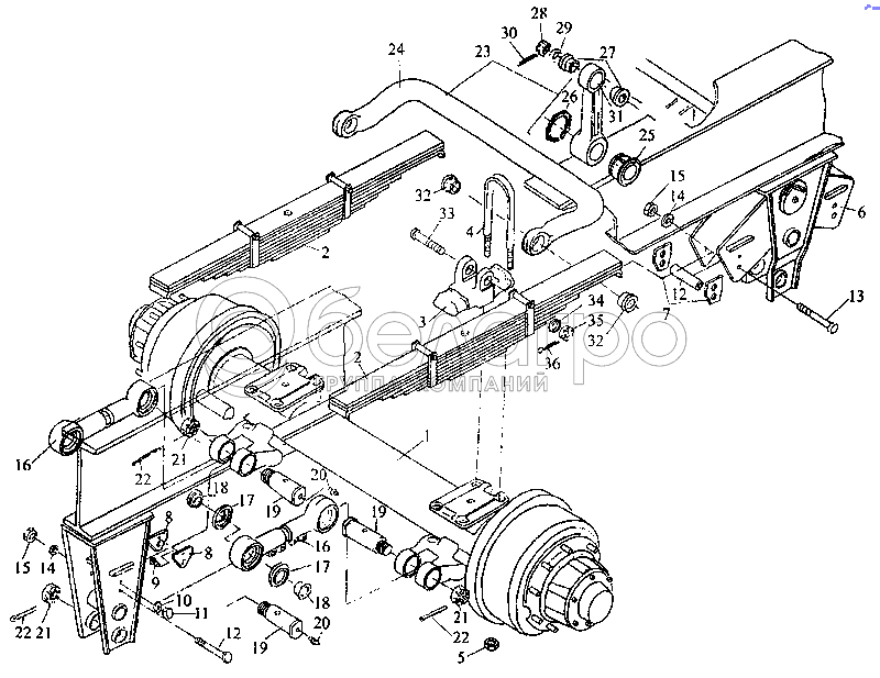 Каталог запасных частей к технике: МАЗ-3PP59. Подвеска. Установка первой оси