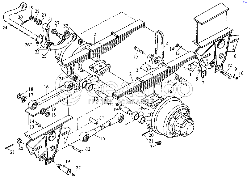 Каталог запасных частей к технике: МАЗ-3PP59. Подвеска. Установка второй оси