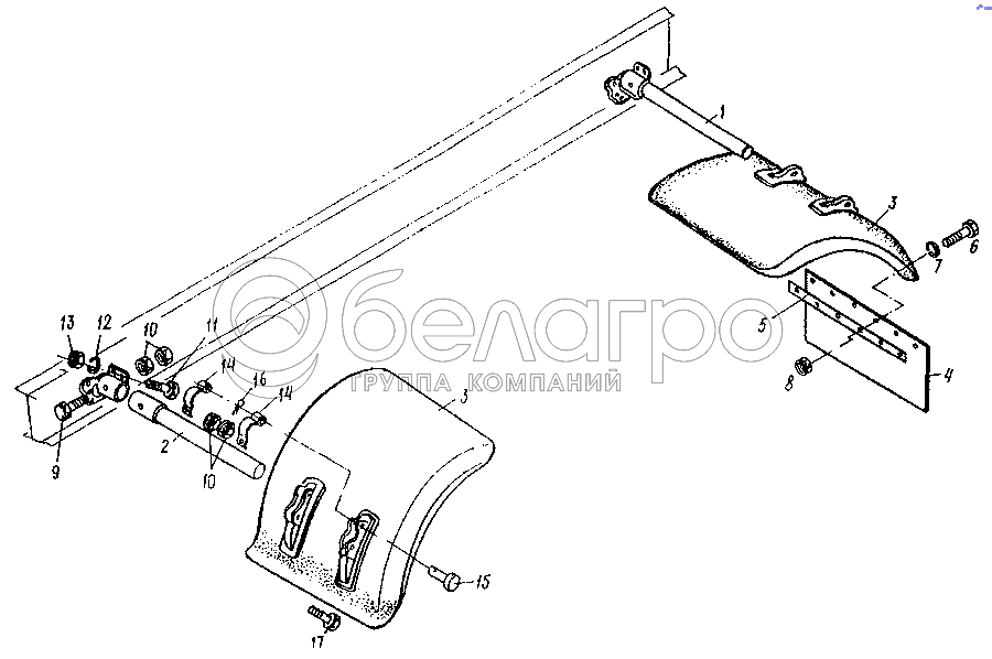 Каталог запасных частей к технике: МАЗ-3PP59. Установка брызговиков