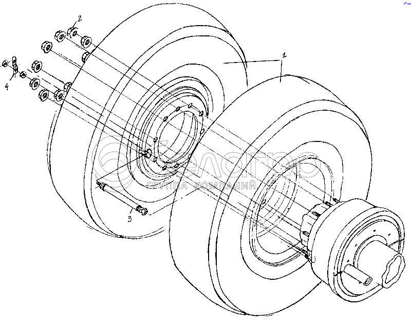 Каталог запасных частей к технике: МАЗ-3PP59. Установка колес