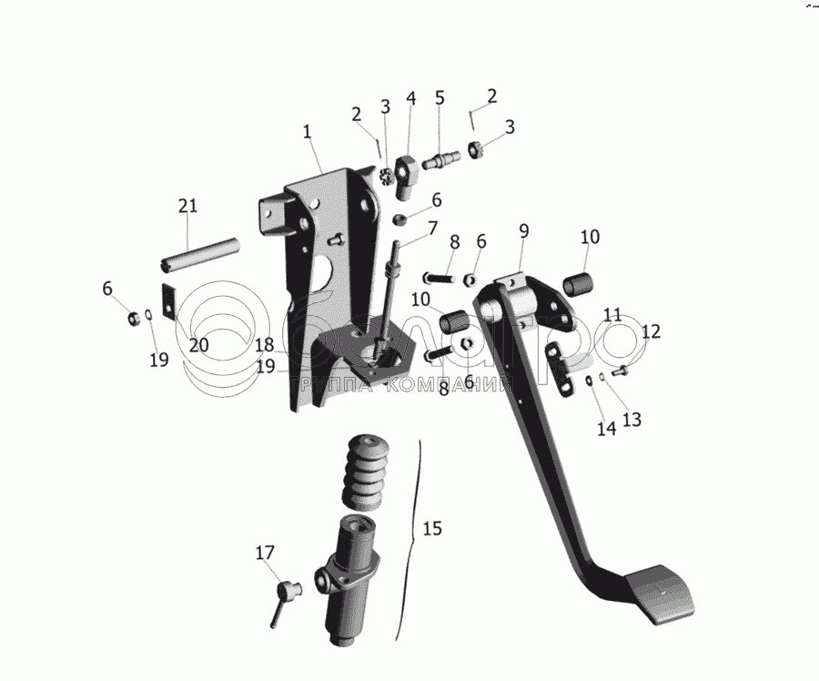 Каталог запасных частей к технике: МАЗ-437030 (Зубренок). Основание педали 64226-1602004