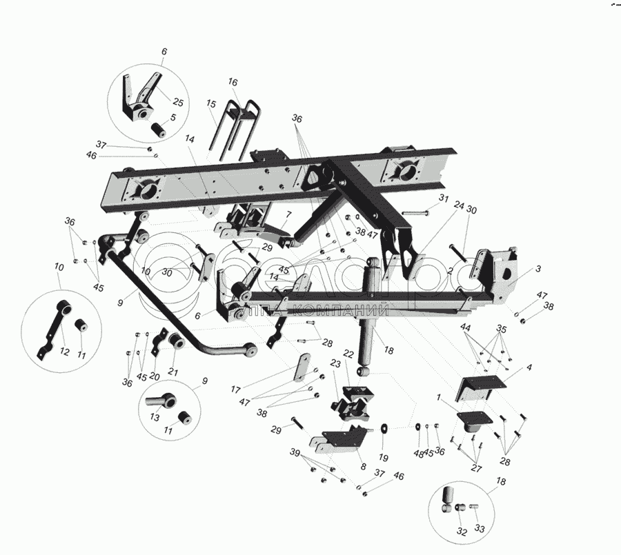 Каталог запасных частей к технике: МАЗ-437030 (Зубренок). Подвеска задняя 4370-2900002