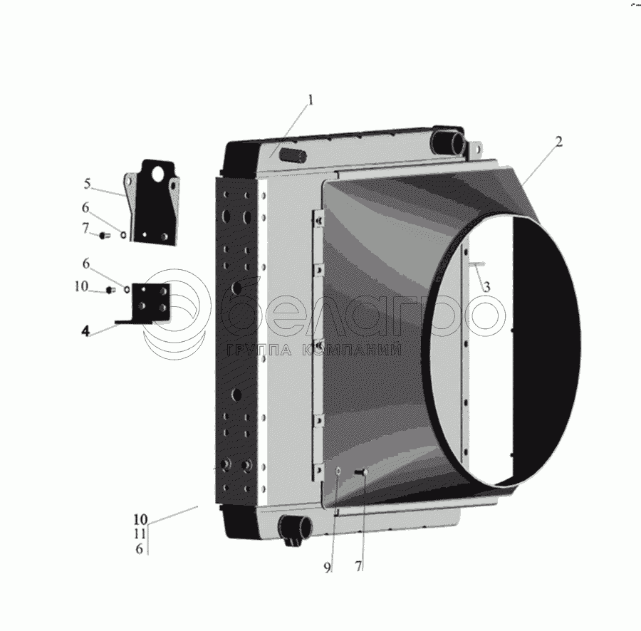 Каталог запасных частей к технике: МАЗ-437030 (Зубренок). Радиатор с кожухом