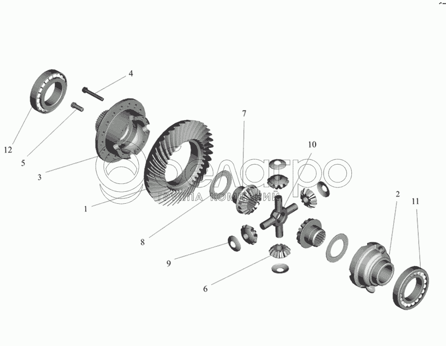 Каталог запасных частей к технике: МАЗ-437030 (Зубренок). Редуктор заднего моста. Дифференциал
