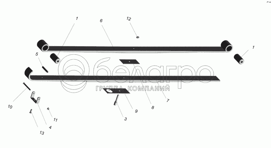 Каталог запасных частей к технике: МАЗ-437030 (Зубренок). Рессора передняя 4370-2902012