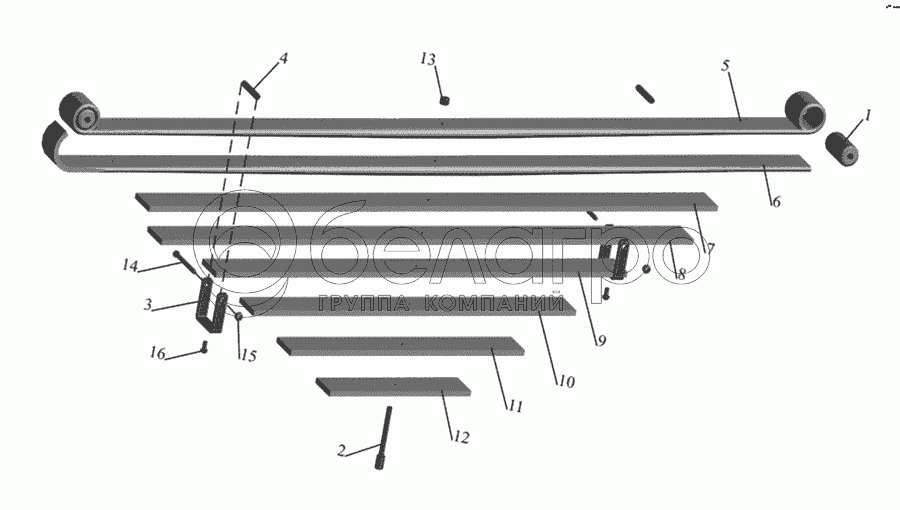Каталог запасных частей к технике: МАЗ-437030 (Зубренок). Рессора передняя 4370-2902012-011