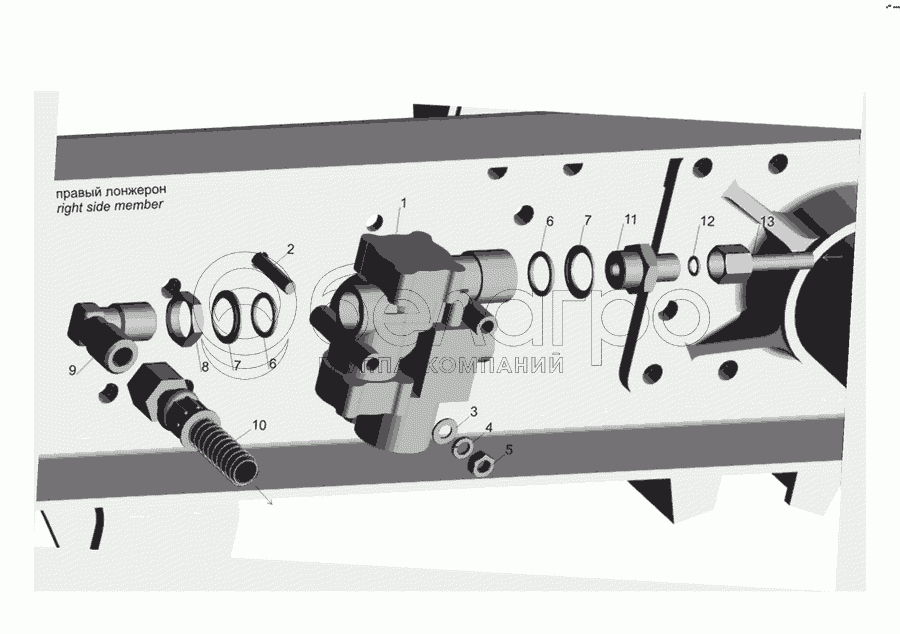 Каталог запасных частей к технике: МАЗ-437030 (Зубренок). Установка модуляторов и присоединительной арматуры