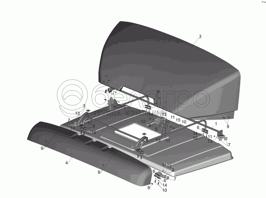 Каталог запасных частей к технике: МАЗ-437030 (Зубренок). Установка обтекателей 4370-8000014-010
