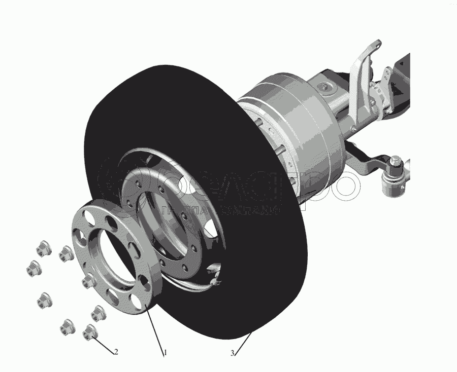 Каталог запасных частей к технике: МАЗ-437030 (Зубренок). Установка передних колес