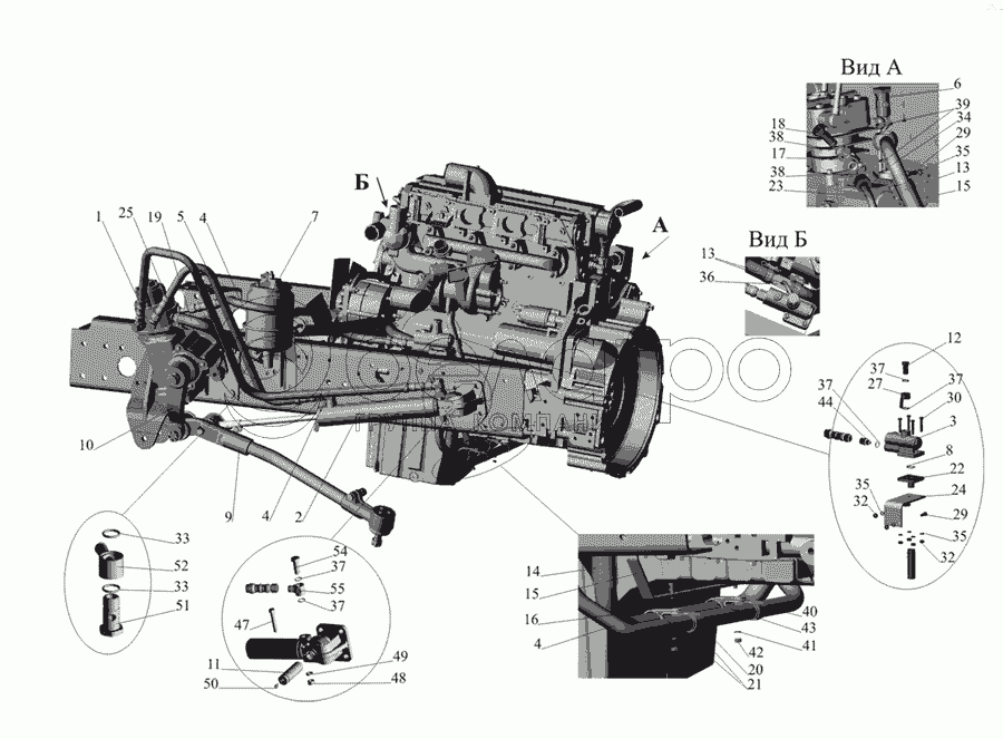 Каталог запасных частей к технике: МАЗ-437030 (Зубренок). Установка рулевого управления 437030-3400001
