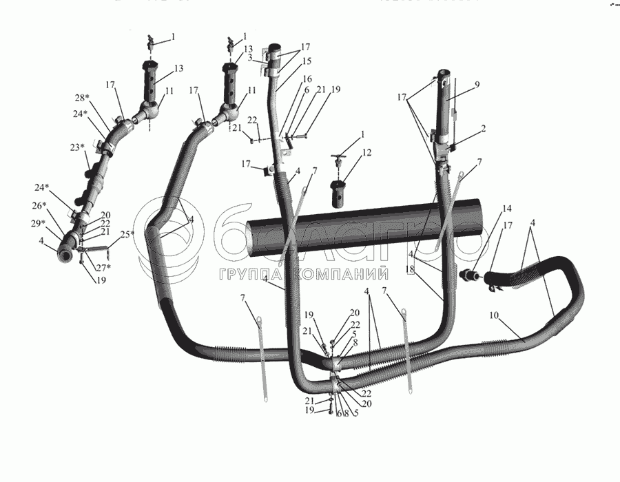 Каталог запасных частей к технике: МАЗ-437030 (Зубренок). Установка шлангов отопителя 437030-8100006