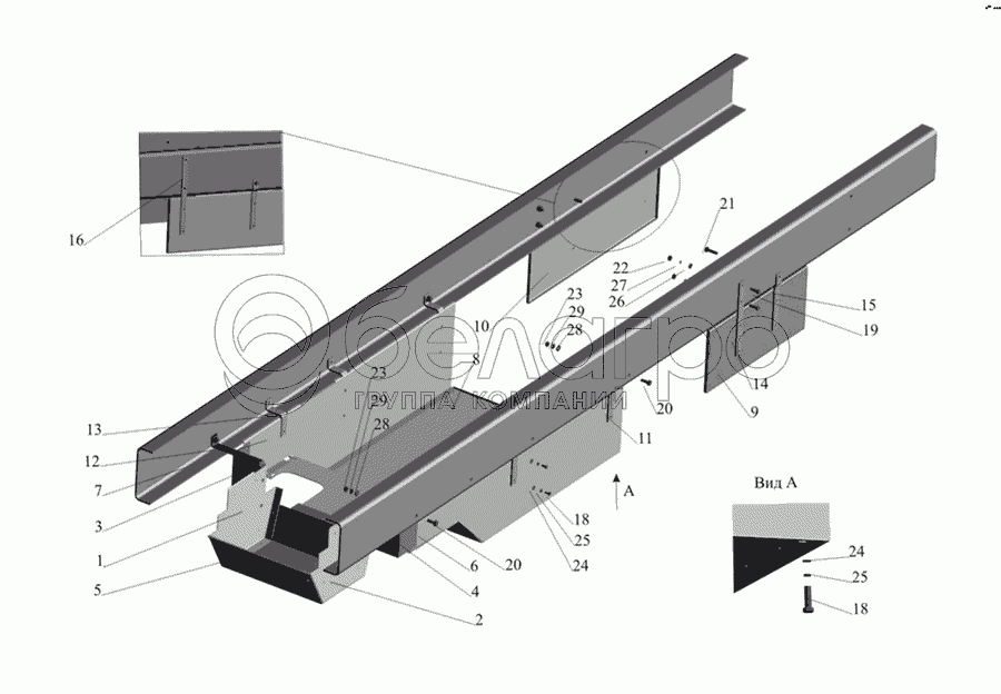 Каталог запасных частей к технике: МАЗ-437030 (Зубренок). Установка шумоизоляционных экранов 4370-1061002-010