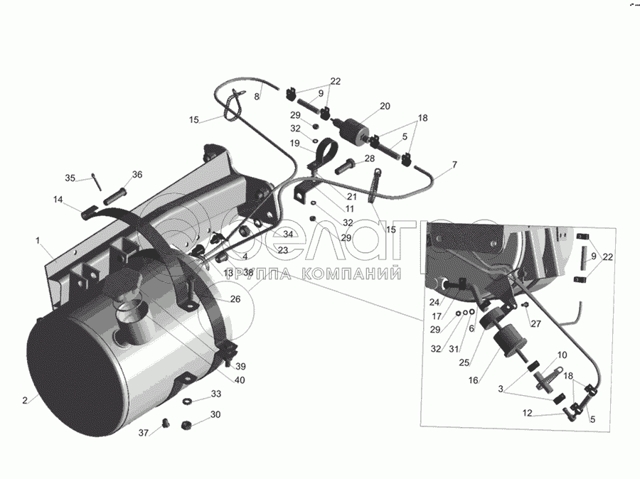 Каталог запасных частей к технике: МАЗ-437030 (Зубренок). Установка топливопроводов подогревателя 437030-1015004