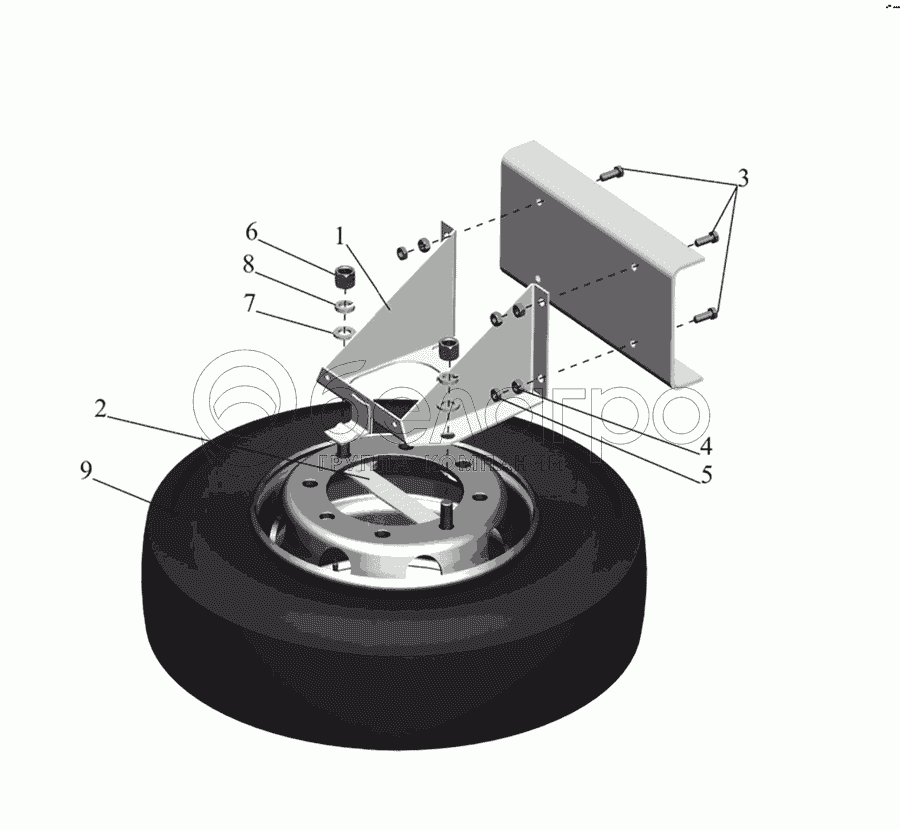 Каталог запасных частей к технике: МАЗ-437030 (Зубренок). Установка запасного колеса 4370-3100001