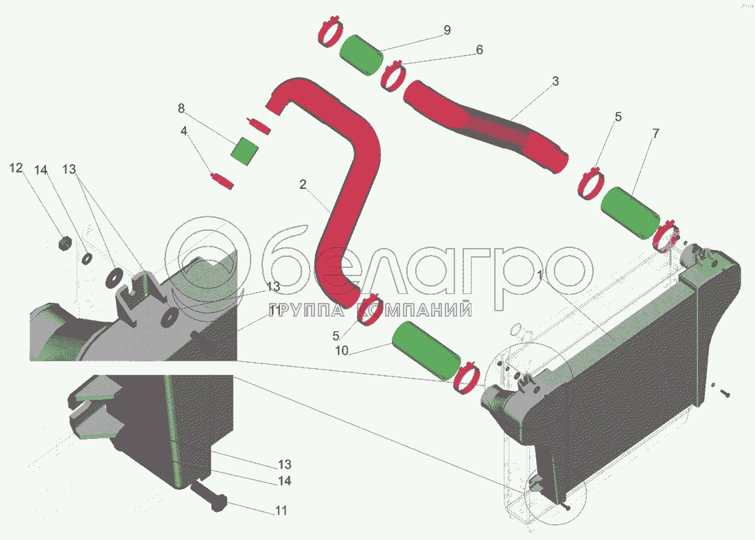 Каталог запасных частей к технике: МАЗ-437040 (Зубренок). Cистема охлаждения наддувочного воздуха