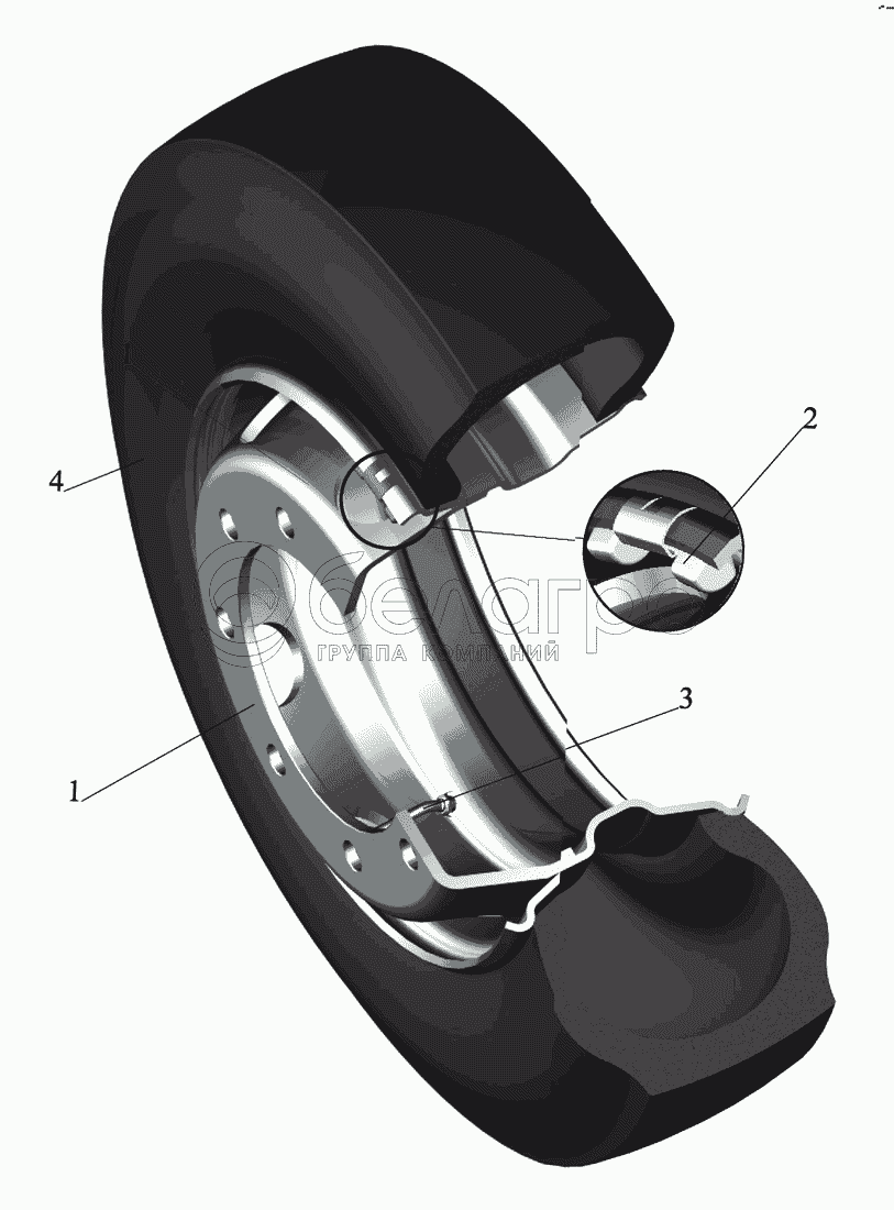 Каталог запасных частей к технике: МАЗ-437040 (Зубренок). Колесо и шина 4370-3101011