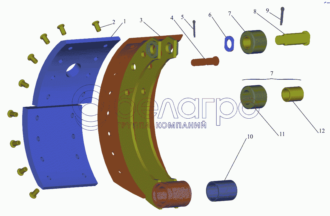 Каталог запасных частей к технике: МАЗ-437040 (Зубренок). Колодка тормоза