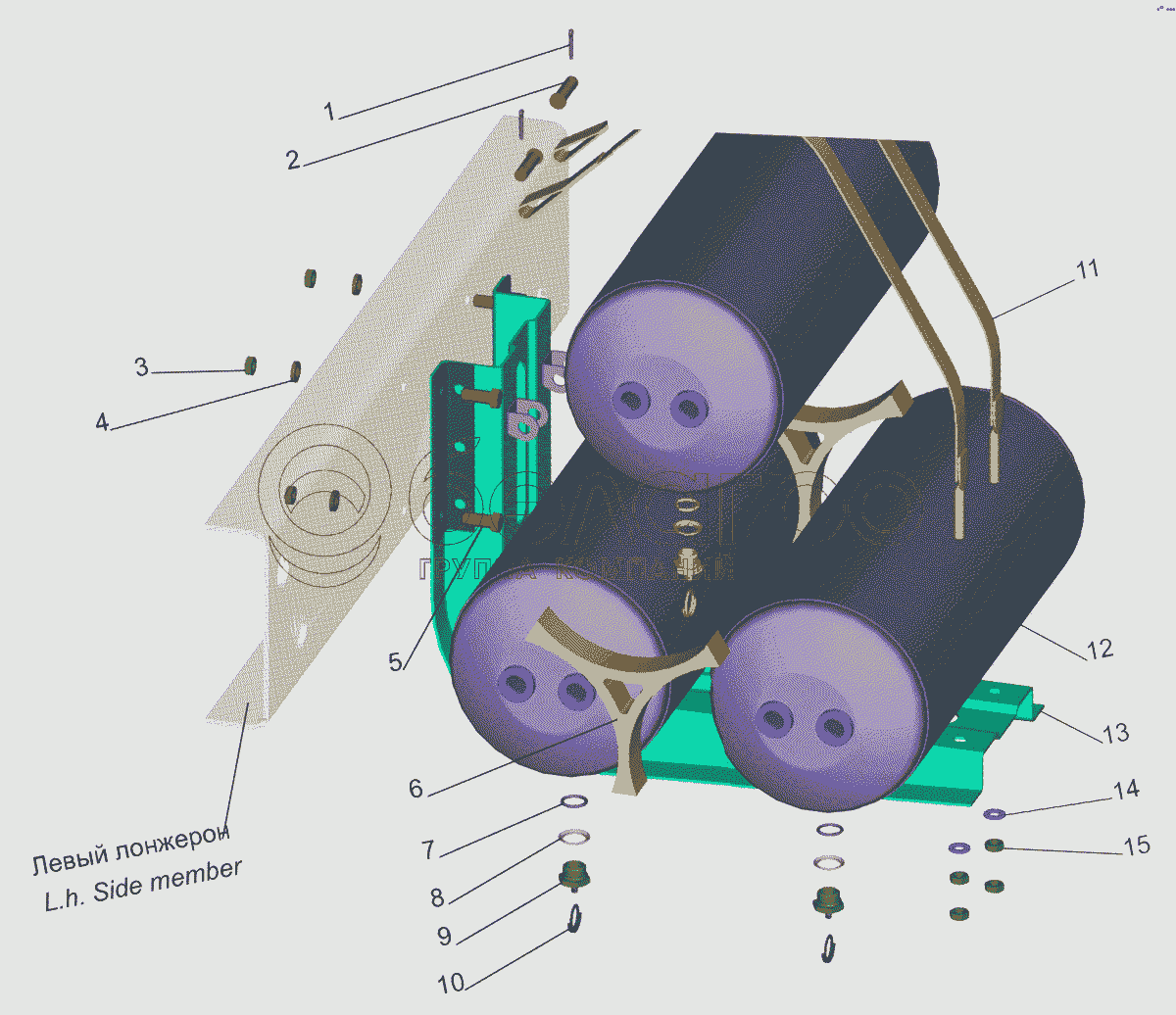 Каталог запасных частей к технике: МАЗ-437040 (Зубренок). Крепление ресиверов