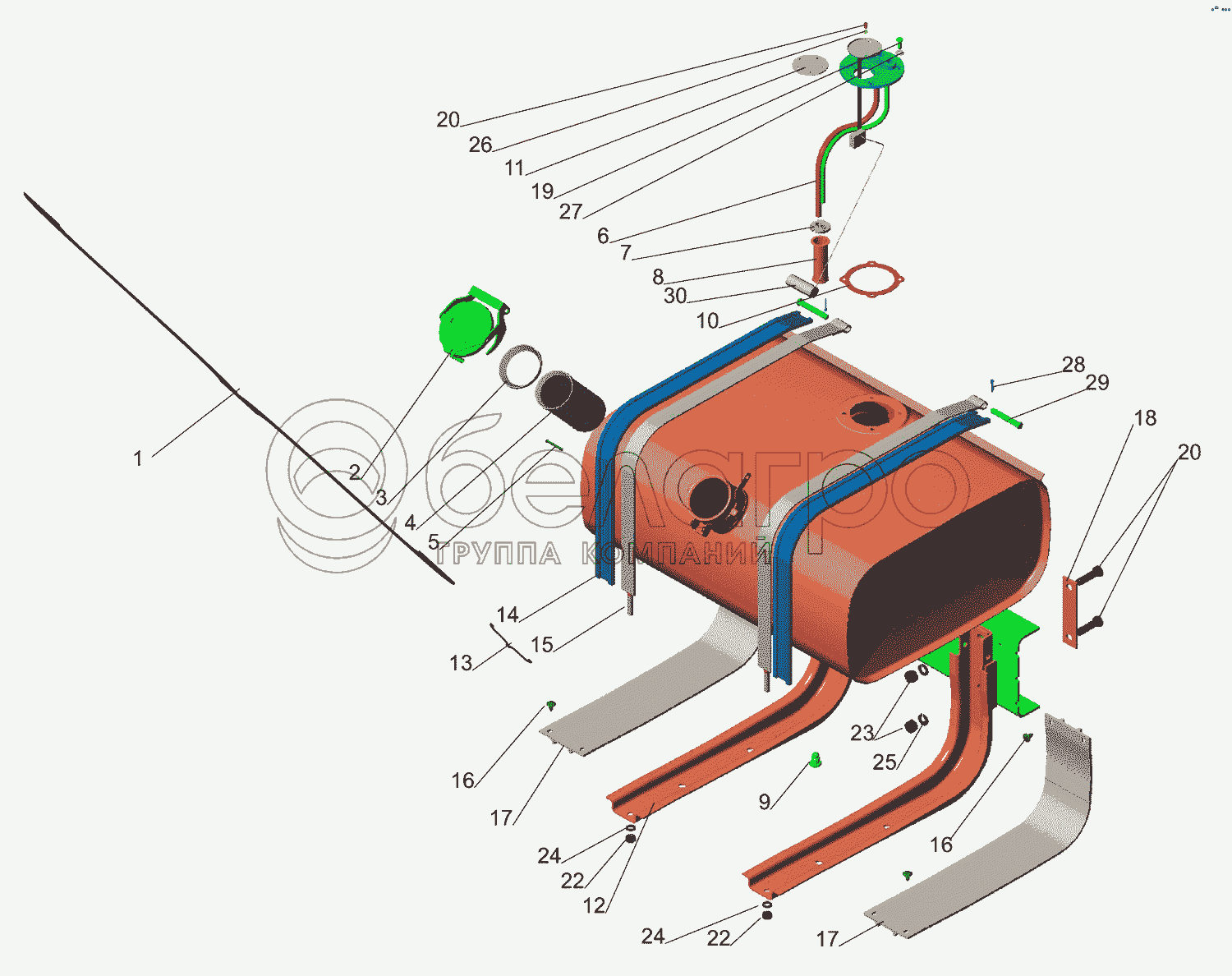 Каталог запасных частей к технике: МАЗ-437040 (Зубренок). Крепление топливного бака 4370-1101002