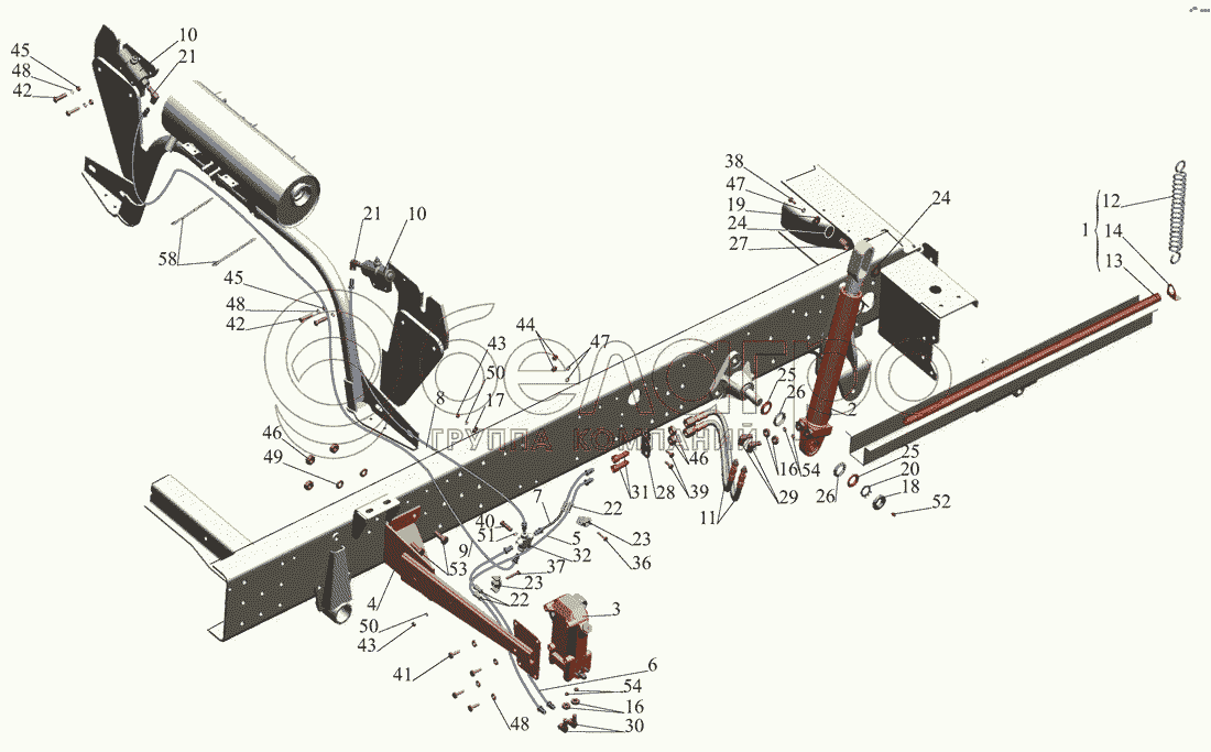 Каталог запасных частей к технике: МАЗ-437040 (Зубренок). Механизм подъема кабины 437141-5000040