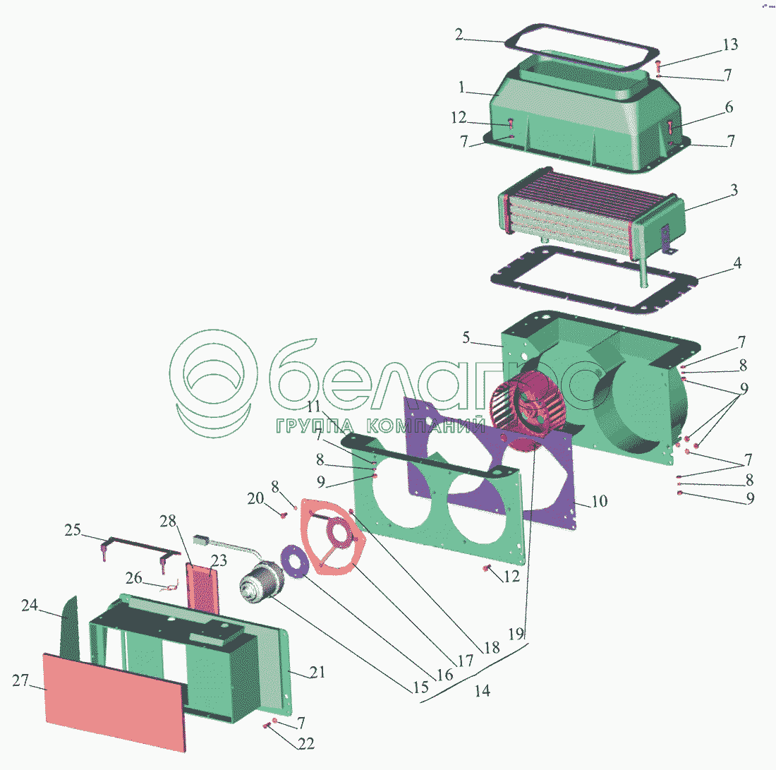 Каталог запасных частей к технике: МАЗ-437040 (Зубренок). Отопитель