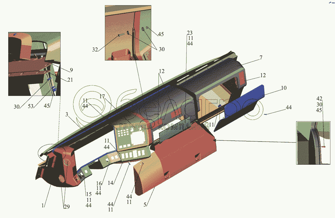 Каталог запасных частей к технике: МАЗ-437040 (Зубренок). Панель приборов 4371-5300016