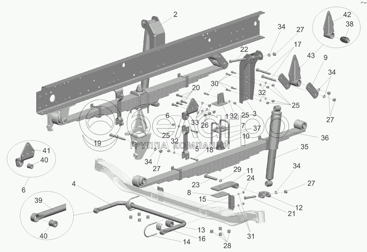 Каталог запасных частей к технике: МАЗ-437040 (Зубренок). Подвеска передняя 4370-2900001-011